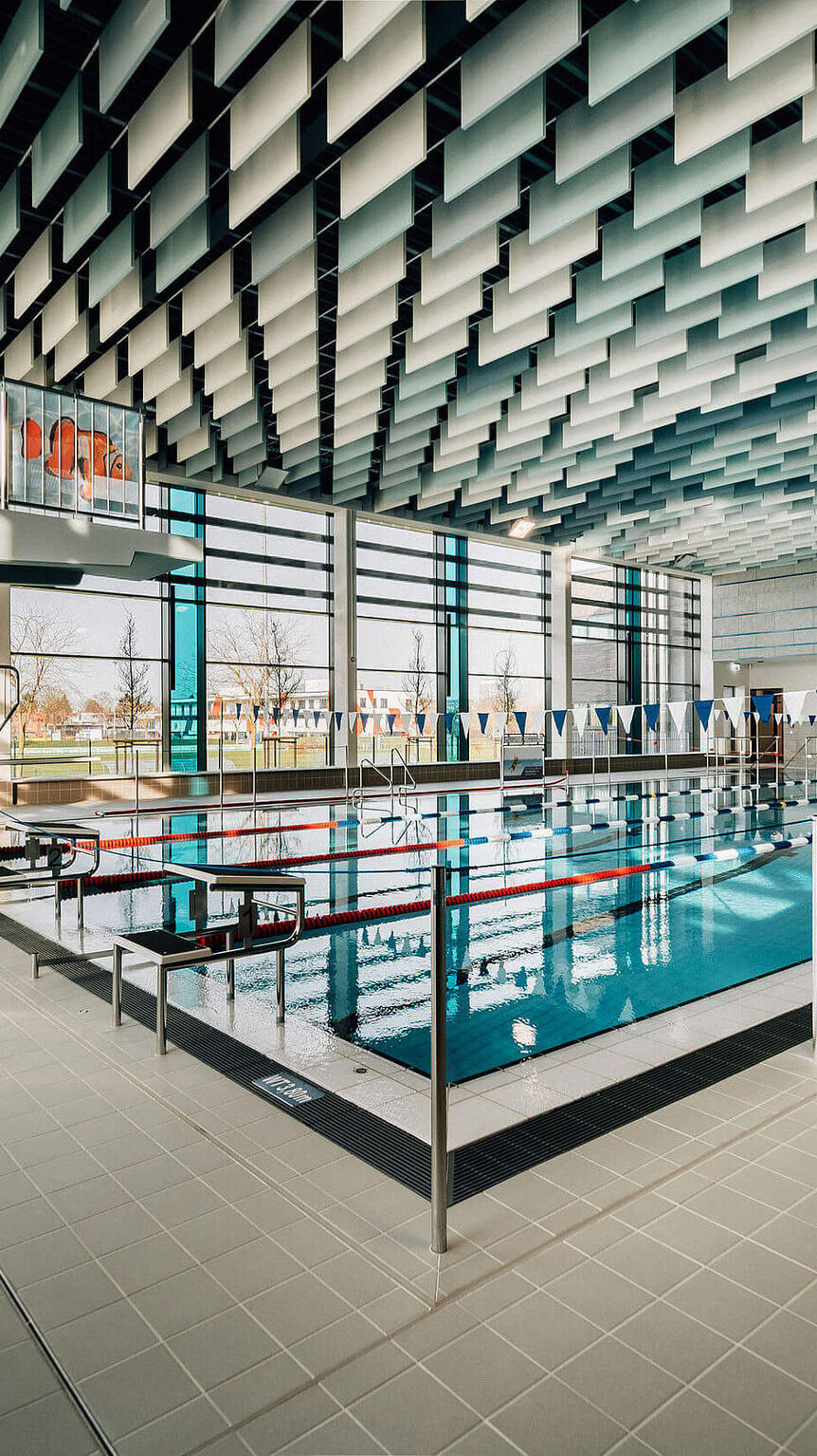 Bei dem Bauvorhaben handelt es sich um den Neubau eines Hallenbades mit angrenzendem, saniertem und modernisierten Freibad. Die Anlage soll als Kombibad betrieben werden. Das Hallenbad ist untergliedert in Eingangs-, Umkleide- und Badehallenbereich mit angrenzenden Kursbeckeneinheiten. Im Obergeschoss des Bades werden neben der Lüftungszentrale die Personal- und Verwaltungsräume ausgewiesen sowie eine ca. 800 m² große physiotherapeutische Praxis. Die Badehalle verfügt über einen Sportbereich mit 25m-Schwimmerbecken und Sprunganlage sowie einen weiteren 3-bahnigen 25 m Nichtschwimmerbeckenbereich mit Hubboden. In den 2 Kursbeckenhallen werden je 12 x 10 m große Variobecken mit Scherenhubboden vorgesehen. Alle kleinklimatisch abgetrennten Funktionsbereiche erhalten einen eigenständigen Geräteraum. Das Foyer dient als Erschließungsfläche für Hallen-Freibad, aber auch Physiotherapie. Das Projekt ist konsequent nach den Vorgaben der DIN 18040 ausgeführt. Zielgruppe des Bades werden in erster Linie Schulen, Vereine, aber auch Individualgäste sein.