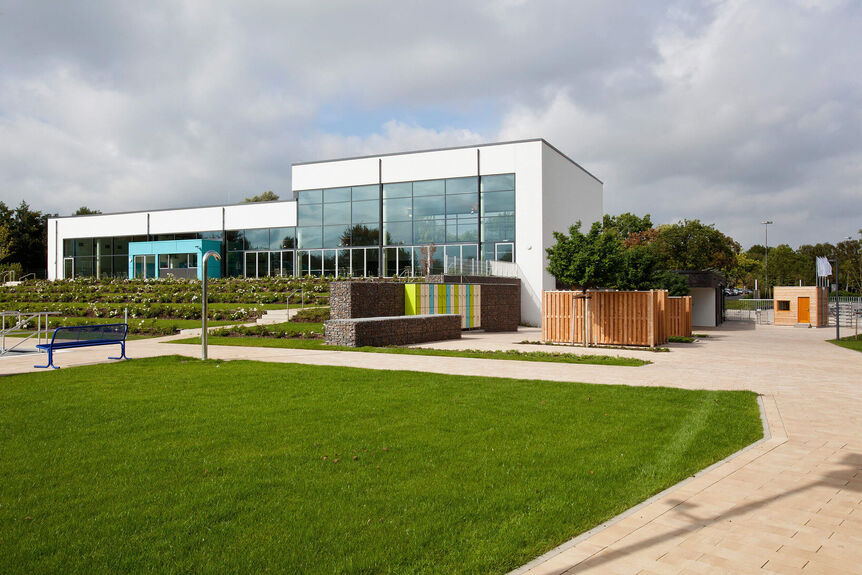 „Im Zuge der Überlegungen mit KRIEGER Architekten | Ingenieure haben wir uns entschieden, das alte Hallenbad zunächst stehen zu lassen. In dem Bereich, in dem sich das alte 50-m-Freibad-Schwimmerbecken befand, sollte das neue Hallenbad errichtet werden. Diese Planung hatte drei Vorteile: Zum einen konnten wir die Unterhaltungskosten der Freibadwasserflächen deutlich senken. Zum anderen konnte parallel zum Bau des neuen Hallenbades das alte weiterhin betrieben werden, sodass unsere Gäste nur zwei Monate auf ein Hallenbad verzichten mussten. Außerdem entwickelte sich durch den neuen Standort des Hallenbades der Panoramagedanke, da von dort aus Blickbeziehungen auf die Freibadanlage bis hin zum nahe gelegenen Pappelsee geschaffen wurden. Die Grundidee des Entwurfs bestand darin, Hallenbad und Freibad zu einer kompakten Anlage zusammenzufassen.“