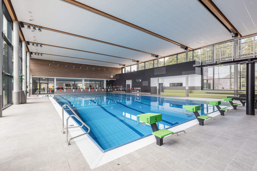 Als letzten Baustein am innerstädtischen Schulcampus in Pfaffenhofen wird das Angebot des Grund- und Mittelschulen-Neubaus sowie der Dreifachsporthalle mit einem Sport- und Familienbad erweitert. Trotz widriger Randbedingungen im Baugrund konnte mit 690 m² Wasserfläche ein kompaktes Bad für Schulen, Vereine und Familien umgesetzt werden. Über eine weiterführende Erörterung der Anforderungen gelang zudem die Einbindung eines kompakten Saunaangebotes.