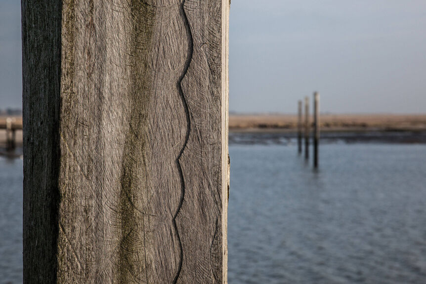 Die Überfahrt dauert 45 Minuten. Zeit genug, um sich vom Watt, den Dalben, der rauen Farbgebung und der Ruhe zu verabschieden.