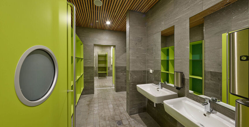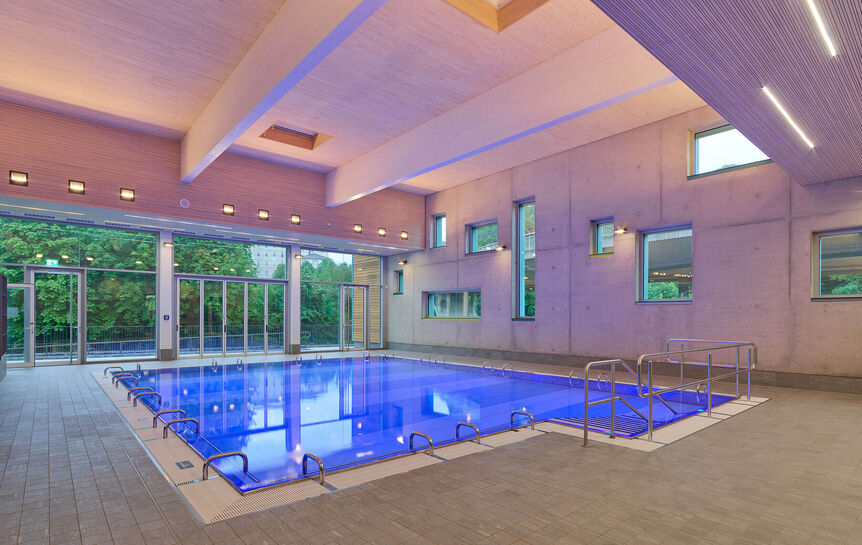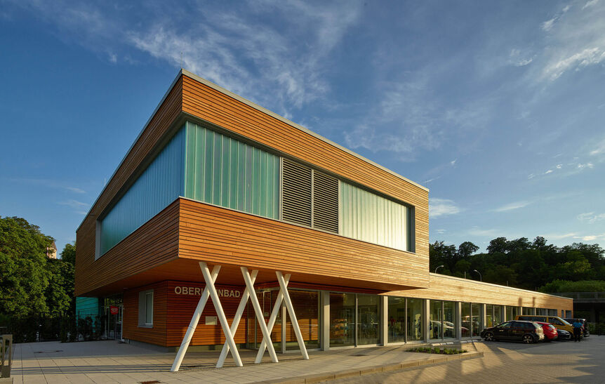 In enger Verknüpfung mit der Holzbautradition entstand eine moderne Architektur für das neue Kreishallenbad in Weilburg.
