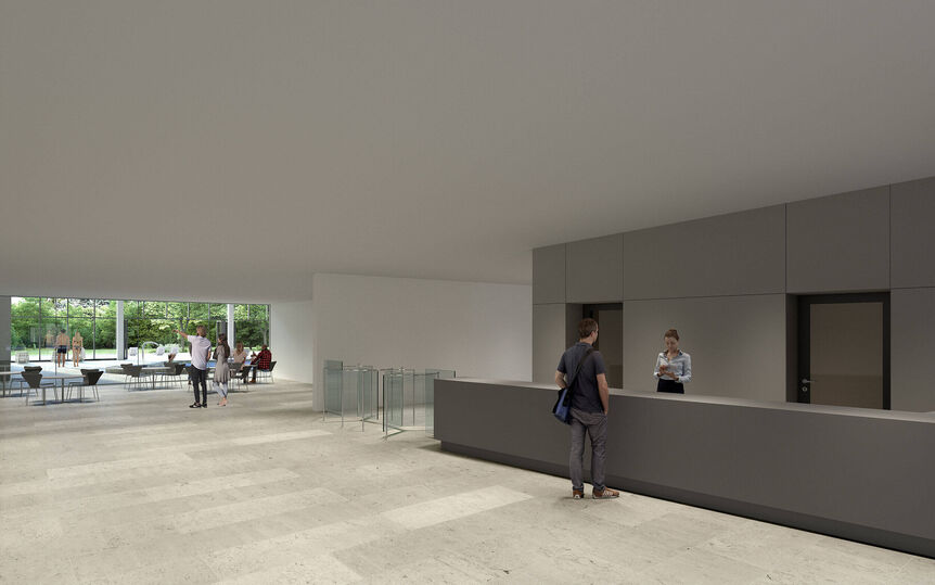 Dienende Bereiche umhüllt mit haltgebendem Klinker stehen in einem Wechselspiel mit transparenten, Natur und Außenanlagen in sich ziehenden Dialog. Ein Konzept mit Fokus auf besondere Details, Materialien und auf innere Betriebsabläufe hin optimiert.
