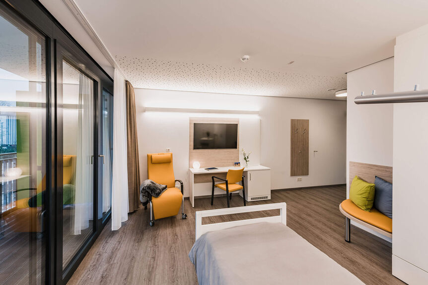 Vollständig barrierefrei gestaltet, bietet das neue Hospiz großzügige Zimmer für Schwerstkranke und Patienten mit sensiblen palliativmedizinischen Pflegebedarf. Jedes Zimmer verfügt über ein ebenfalls barrierefreies Bad und eine Terrasse beziehungsweise einen Balkon. Hoher Komfort, eine technisch ergonomische Ausstattung und speziell geschultes Personal sind hier besondere Eckpfeiler des Betreuungskonzeptes. Ein Umfeld für den selbstbestimmten und würdevollen Abschied.