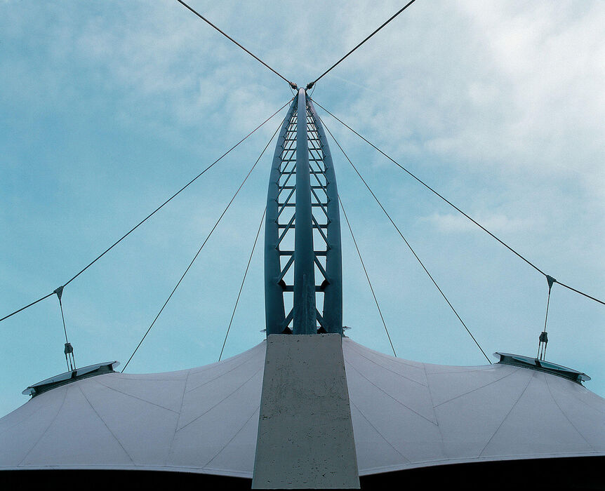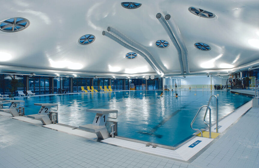 Vom Freibad zum Allwetterbad. Durch die Überdachung eines vorhandenen Freibades entstand ein ganzjährig nutzbares Allwetterbad. Der Lösungsansatz: Ein doppelschichtiges Membrandach, das von einem geneigten Pylone getragen wird. Mit dieser Tragwerksplanung gelang eine kosteneffiziente Umnutzung vom Freibad zum Allwetterbad, die für viele Bäder mit ähnlichen Voraussetzungen eine interessante Alternative darstellt.