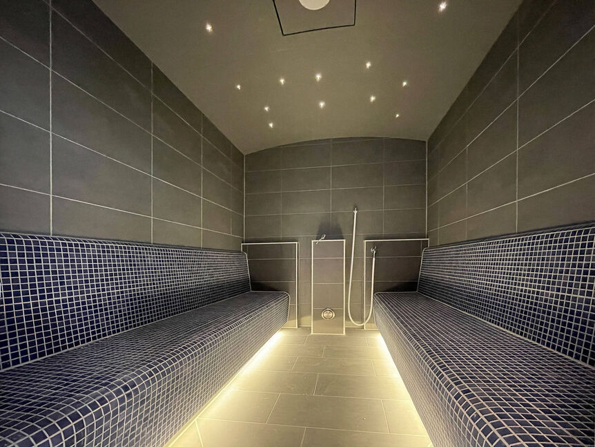 - Umbau und Erweiterung des Saunabereiches für eine Kapazität von 150 Personen